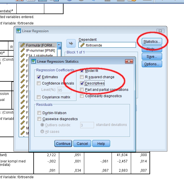 Bild 5. Hur man hittar ”Descriptives” i regressionsmenyn.
