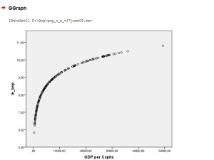 Bild 3. BNP per capita efter att vi tagit den naturliga logaritmen av variabeln.