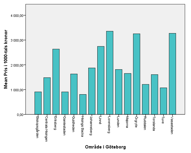 Bild 7. Genomsnittligt pris på bostadsrätter i olika stadsdelar i Göteborg.